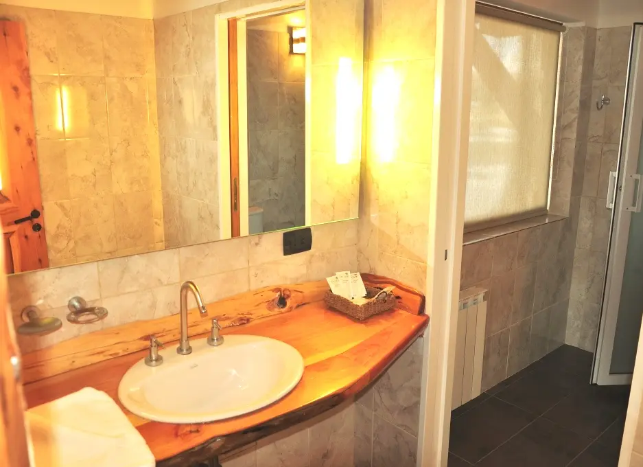 1 baño principal completo + Jacuzzi. 1 baño secundario (abajo) completo. Secador de Pelo.